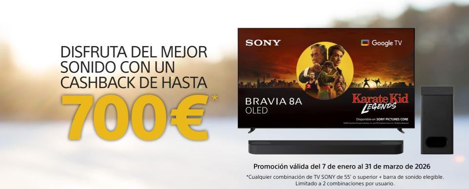 Promoción de reembolso en Barras de sonido seleccionadas con la compra de una TV Sony BRAVIA 55" o más dentro del periodo promocional.